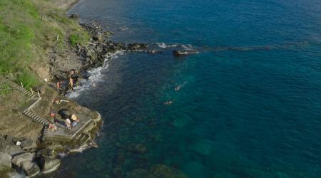 Ça fait rêver, c'est à Bouillante que cela se passe. Mais attention, l'eau peut être aussi trop chaude en fonction de la météo et donc très difficile d'y entrer.