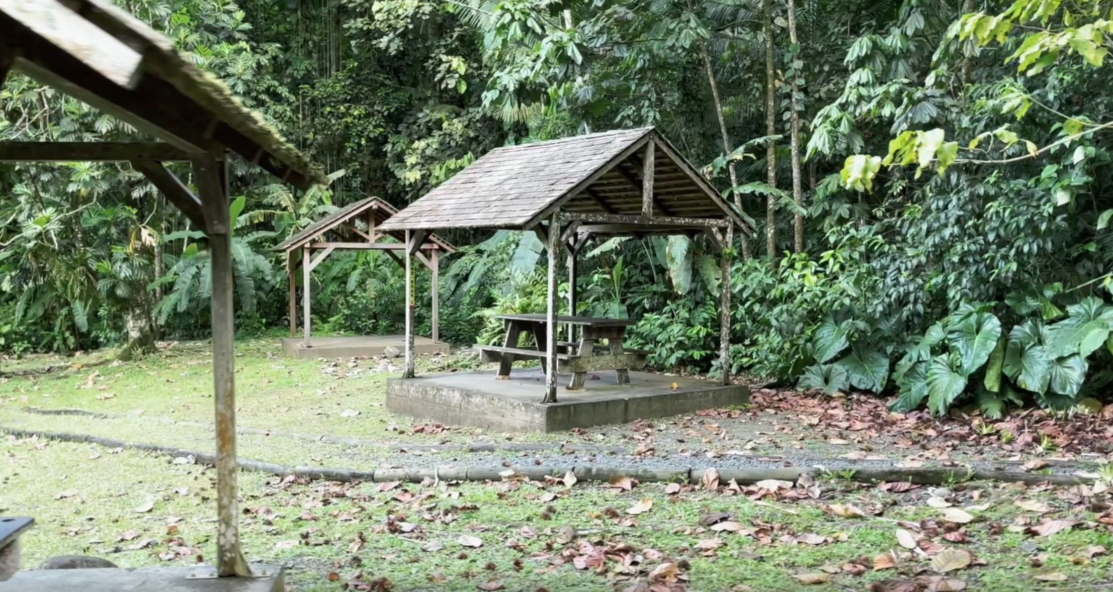 Après avoir descendu quelques marches, vous arrivez dans une clairière où trônent de nombreux carbets, disséminés de-ci de-là. En plus de vous protéger du soleil, ils vous offrent un confort idéal pour des moments de partages conviviaux grâce à leur table de pique-nique munie de bancs. Cerise sur le gâteau, vous pouvez prévoir d’apporter vos grillades ! De grands barbecues au feu de bois vous attendent dans ce cadre délicieux.