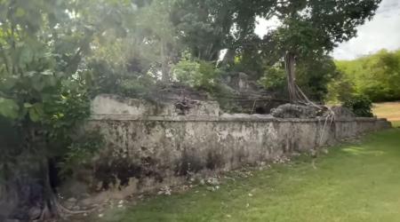 La construction, si elle est aujourd’hui abandonnée et en très mauvais état, est sous l’emprise totale de ce figuier. Cet arbre multitroncs (Ficus citrifolia) possède d’imposantes racines, dont certaines sont à hauteur d’homme. De nombreux autres figuiers grandissent par ailleurs à ses côtés.