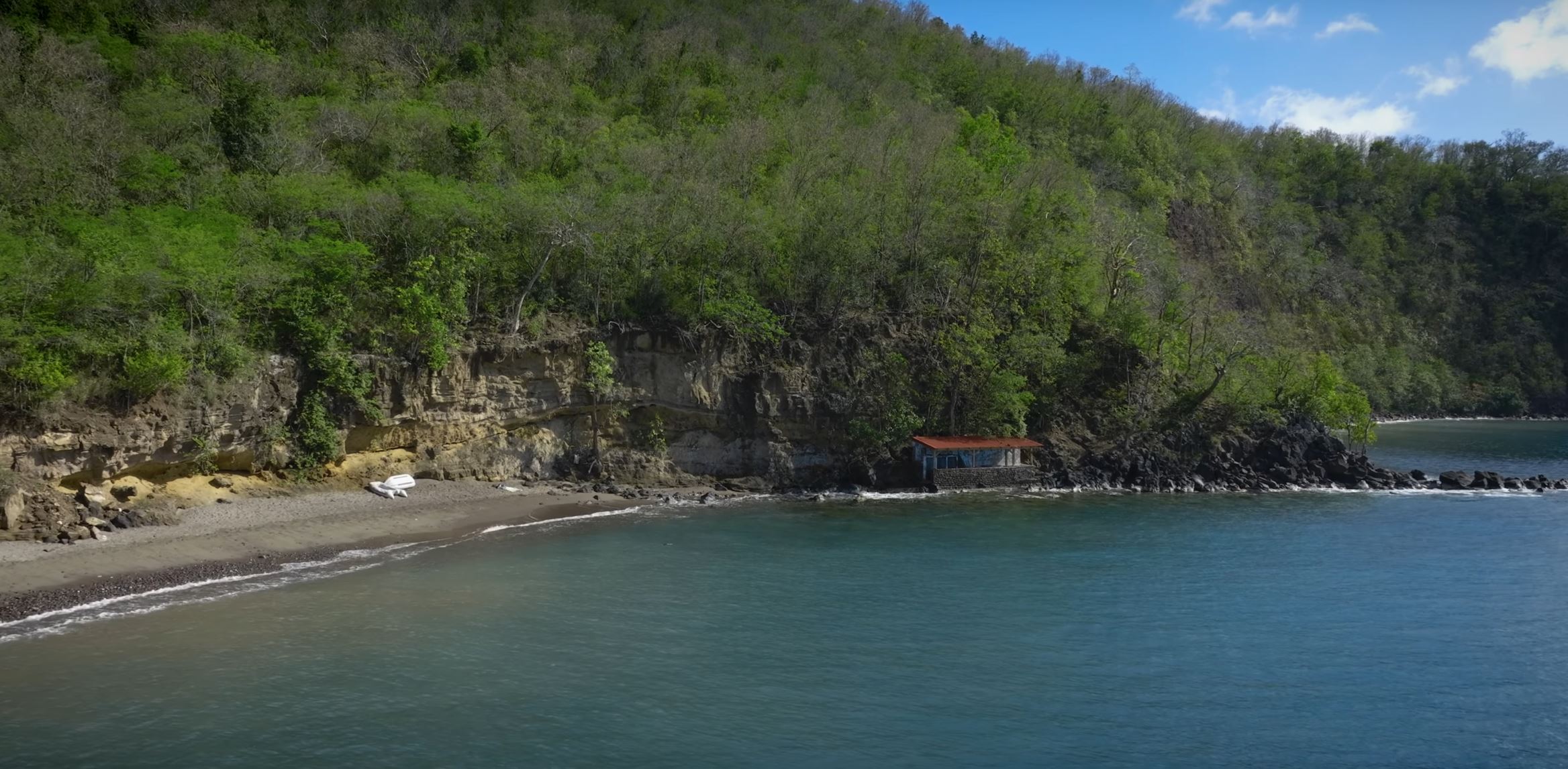 Dans cette vidéo nous découvrons la plage de Anse à Sable. Nous sommes sur la commune de Bouillante ou nous allons prendre un bain chaud au Bain chaud du Curé.Cette source d’eau sort de la roche de la falaise. Dans les années 50, un emménagement a été construit afin de profiter au mieux de cette source. La plage de Anse à Sable longe tout du long pour y accéder.